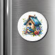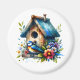 Un aimant adorable à coller sur votre frigo ou casier pour tenir des notes importantes, des menus ou des oeuvres d'art. Un joli aquarelle illustration d'une vieille maison d'oiseaux rustique et lunatique avec un joli oiseau bleu entouré de fleurs.