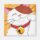 Cute Maneki Neko Lucky frigo design aimant. Chat calico blanc et brun joyeux assis dans une position de beckoning associé aux Maneki Neko Cats japonais. Il porte un collier rouge avec une énorme cloche dorée. La gentillesse des amoureux de les chats. Je ferais un grand cadeau ! Créé à partir d'une peinture originale © 2009 Lisa Marie Robinson