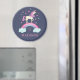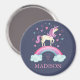 Un mignon aimant de cuisine personnalisée pour filles rose et violet arc-en-ciel unicorne. Personnalisez-le pour votre petite fille. Conçu pour vous par Blackberry Boulevard.