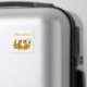 Joyeux aimant de Noël avec un dessin délicieux d'une paire de renards avec un oiseau amical à proximité. Entouré de cônes de houx et de pins et d'autres feuillages d'hiver.