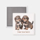 Photographie de deux chiots gracieux couleur chocolat, Yorkshire. Les chiots se regardent comme deux bons amis.
