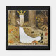 Daga dans une longue robe blanche et couronne dorée qui marche à travers les bois avec sa Tomte comme trolls effrayants regardent. Belle illustration de John Bauer du conte de fées suédois "Daga and the Flying Troll of Sky Mountain".