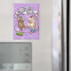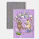 Mignonne souris dansantes sur un aimant frigo. Utilisez "Personnalisez ce modèle" pour modifier le texte "Happy 12th Birthday Rachel x" et créer un cadeau d'anniversaire unique et customisé. Doté de deux souris heureuses en casquettes de fête, dansant comme des confettis et un ruban tombent autour d'elles, avec des ballons éparpillés sur le sol, avec un arrière - plan floral.