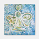Le tableau est d'un ange blanc et or aux accents verts entouré d'un ciel tourbillonnant bleu et de coeurs dorés. Les anges ont un coeur blanc au lieu d'un halo au-dessus de la tête de l'ange.