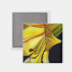 avec un design original de la peinture aquarelle de la fleur de lys jaune et dorée de Sacha Grossel. Ce design botanique de pétales de lys jaunes dorés contre un arrière - plan noir et foncé est abstrait et dramatique. Ce design floral montre la fleur en gros plan, macro et les couleurs vives et vives en font un design artistique, inhabituel, abstrait.