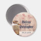 Mariage commémoratif / enregistrez l'aimant de date avec vos noms personnalisés et la date du mariage. Conçu sur le thème de la campagne rustique. Une vieille boîte de lait rouillé avec du blé et des fleurs rouges défraîchies dans l'arrière - plan dressé contre un panneau de bois faible.