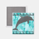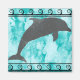 Un dauphin d'aquarelle beautfil avec une bordure d'arrière - plan bleu et d'onde noire.