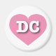 Cet aimant est doté d'un coeur rose vibrant contenant les lettres coques supérieures DC, en gras, blanches, l'abréviation du District de Columbia.