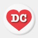Cet aimant présente un coeur rouge vif contenant les lettres coques supérieures DC, en gras, blanches, l'abréviation officielle du District de Columbia.