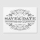 Un aimant de date de sauvegarde élégant et épuré présentant une fioriture de filigrane noir complexe encadrant une typographie mixte-grasse sur un fond blanc croquant. La bordure ornée inspirée de l'époque victorienne donne à ce design une élégance formelle intemporelle qui se marie parfaitement avec n'importe quelle esthétique de mariage. Tous les noms et dates sont entièrement modifiables.