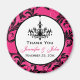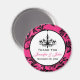 Ce cadeau de mariage moderne et tendance en forme de magnet de remerciement avec lustre en rose fuchsia, noir et blanc, présente une bordure ornée de volutes et de circonvolutions roses et noires qui correspond à l'invitation de mariage ci-dessous. Vous pouvez également le personnaliser pour qu'il dise "Save the Date" et l'utiliser pour annoncer vos prochains noces à votre famille et à vos amis. Si vous avez besoin d'autres articles assortis, veuillez envoyer votre demande par courriel à niteowlstudio@gmail.com.
