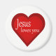 A graphic heart by artist/designer Charmaine Paulson with the texte "Jesus loves you" on a magnet.
