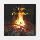 Photo d'un feu de camp fait de bâtons, entouré de rochers, brûlant contre la nuit noire. Texte personnalisable : "J'aime les feux de camp."