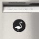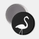 Un flamant blanc vif sur un arrière - plan noir, accentue cet aimant, le rendant amusant et estival.