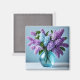 Cet aimant est montré avec une photo de belles fleurs violettes dans le vase. Photo générée par AI. Customisez cet aimant ou achetez tel quel. Image sous licence