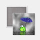 Jolie petite grenouille verte dehors par jour de pluie sous un parapluie bleu. Amusant et aimant unique ! Dessin de Taylor Addams.