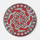 Ce design de cercle concentrique contient des couches de motifs géométriques qui ressemblent à des engrenages que l'on retrouve dans les machines modernes ou même aliens, dans des tons de rouge et de gris.