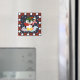 Cet aimant décoratif Joyeux Noël a un cadre carrelé avec des boules de neige et des petits arbres de Noël. Au milieu se trouve un petit pingouin tenant un bonbon avec un Robin sur le dessus. Derrière un ciel bleu nuit foncé avec neige pois. Le texte "Joyeux Noël" peut être modifié ou supprimé.