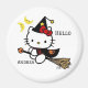 Aimant rond de 3 pouces avec Hello Kitty et il dit bonjour et le nom de la personne.