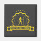 Phoque vintage jaune représentant une survivante de la jungle avec lance et couteau.
