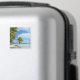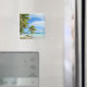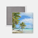 Aimant photo souvenir avec un palmier suspendu sur une plage de sable blanc d'une île tropicale dans l'océan Pacifique appartenant à l'archipel de Tahiti et Bora Bora Polynésie française.