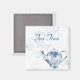 Joli aimant frigo bleu et blanc avec une théière fleurie bleue et blanche, sur un arrière - plan tourbillon floral bleu pâle, texte lit Tea Time et peut être customisé à lire ce que vous voulez.