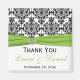 Cet aimant de remerciement de mariage à damas noir et blanc avec un ruban FAUX vert chartreuse et un bijou broché correspond à l'invitation de mariage présentée ci-dessous. Si vous avez besoin d'autres articles assortis, veuillez envoyer votre demande par courriel à niteowlstudio@gmail.com.