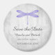 Élégant et simple Aimant de sauvegarde de date avec un dragonfly violet sur un fond gris grunge. Ce design est un choix unique pour annoncer un mariage moderne. Facile à personnaliser avec vos détails de mariage. Cliquez sur "Personnaliser" pour trouver plus d'options de personnalisation.