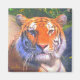 Portrait de gros plan saturé d'un tigre de Sibérie, plongeant dans un trou d'eau par une chaude journée d'été.