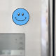 Aimant de visage souriant et joyeux en bleu.