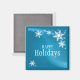 Vacances d'hiver personnalisables / Aimant de Noël avec illustration de flocons blancs sur le bleu.