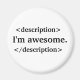 Cet aimant a un arrière - plan blanc solide avec un simple texte noir comme premier plan. C'est un jeu de mots HTML où le propriétaire se décrit comme génial (ce qu'ils sont).