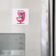 Cet aimant a deux chats un noir un blanc assis dans une chaise rose du milieu du siècle sur un arrière - plan blanc aux pois roses. Customisez votre texte avec le modèle.