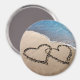 Belle photo originale de deux coeurs écrits dans le sable le long de l'eau bleue de l'océan pour signifier amour et romantisme. Super concept pour les mariages d'été à venir.