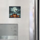 L'aimant est affiché avec un citrouille Halloween éffrayant et des chauves-souris imprimé. Customisez cet objet ou achetez tel quel. Image sous licence