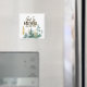 Un aimant de citation inspirant représente une aquarelle naturelle simple avec une forêt de pins verts et d'or. Il comporte une citation chrétienne encourageante, "Dieu est fidèle tout le temps."