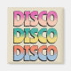 Style rétro grunge coloré "Disco Disco Disco Disco" design de texte avec décoration de lettres rayées