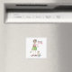 Diva domestique habillée pour le nettoyage de la salle de bain Diva domestique : Dans mon dessin, notre Diva domestique est habillée d'une jupe verte courte, dessus à col bas rose sans manches, anneaux d'oreilles, collier, portant des pantoufles avec ses cheveux en rouleaux; prenant une pause en regardant des feuilletons elle va bientôt utiliser sa brosse de toilette pour faire le nettoyage nécessaire dans la maison. Elle est surveillée de près par son petit caniche attentif. J'ai aimé dessiner mon Diva car elle illustre les différents rôles, réalités et rêves que les femmes vivent. Je pense que notre Diva se porte bien et j'espère qu'elle vous donnera un sourire, vous et vos amis, quand vous avez pris à l'occasion mon croquis sur cet aimant. Merci, Pam et Bubbles le caniche