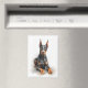 This artwork is part of a coordinated collection and is also available on a matching mug, magnet, cell phone case, acrylic keychain, and sandstone coaster, making it easy to create a cohesive Doberman gift set.