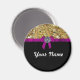 PERSONNALISEZ cette élégante galerie girly brillant or tourbillonnant moderne abstrait perlé et perle motif et rose chaud arc-et-ruban magenta, sur noir avec votre propre texte, nom ou monogramme, initiales. PERSONNALISER Utilisez le BOUTON PERSONNALISER pour ajuster le texte, la taille, la position de la police par glisser-déplacer.