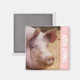 Photographie de cochon sur arrière - plan rose avec les mots "piggy douce" imprimés à côté.