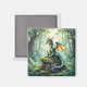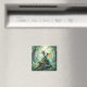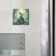 Aimant à thème dragon. Un dragon lunaire, rendu dans un style d'illustration aquarelle détaillé, perche au-dessus d'une ruine en pierre ancienne recouverte de mousse. La lumière du soleil filtre à travers la canopée dense de la forêt, illuminant les poussières mottes dansant dans l'air. Les écailles du dragon brillent de teintes irisées, et ses yeux tiennent un art imaginaire doux, sachant et amusant. Mignonne pour la chambre d'un garçon.
