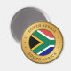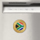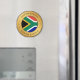Le drapeau sud-africain est encastré dans une bague en faux or arrondie. Les mots "Afrique du Sud" se trouvent en haut et en bas du design, et ont un effet pressé. La paire de trois étoiles décoratives les unes en face des autres, est également conçue avec un effet pressé.