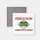 Aimant avec le drapeau de Ferguson, Missouri. Un drapeau blanc avec un texte rouge et une date de fondation de la ville dans un champ vert