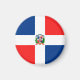 Le drapeau de la République Dominicaine, tel que décrit par l'article 96 de la Constitution dominicaine, est orné d'une croix blanche centrée qui s'étend aux bords et divise le drapeau en quatre rectangles—les plus hauts sont bleus (côté levant) et rouges, et les plus bas sont rouges (côté levant) et bleus. Une petite armoirie ornée d'un bouclier au design de drapeau et soutenue par une branche de laurier de baie (à gauche) et une fronde de palmier (à droite) est au centre de la croix ; au-dessus du bouclier, un ruban bleu affiche la devise nationale : Dios, Patria, Libertad (Dieu, Patrie, Liberté). Sous le bouclier, les mots República Dominicana apparaissent sur un ruban rouge (ce ruban rouge est représenté dans des versions plus récentes comme ayant ses pointes vers le haut). Au centre du bouclier, flanqué de trois lances (deux d'entre elles tenant des bannières dominicaines) de chaque côté, est une Bible avec une petite croix au-dessus et dit être ouvert à l'Évangile de Jean, soit au chapitre un ou chapitre 8, verset 32, qui dit Y la verdad nos hará libre (Et la vérité vous rendra libres). Le bleu sur le drapeau représente la liberté, le blanc pour le salut, le rouge pour le sang des héros. L'enseigne civile suit le même design, mais sans la charge dans le centre. Le drapeau a été dessiné par le chef des Trinitéens, le père fondateur (Padre de la Patria) Juan Pablo Duarte. Pour créer des drapeaux distincts pour l'Etat et pour l'usage civil, les armoiries, adoptées en 1844, ont été placées sur le drapeau de l'Etat. La devise était le mot de passe des Trinitéens.