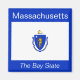Une image authentique et de qualité du drapeau du Massachusetts dressé entre le nom de l'Etat et le surnom sur un arrière - plan de couleur drapeau.