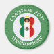 Aimant rond pour décor de Noël avec un ange habillé dans le drapeau du Mexique. L'ange se trouve à l'intérieur d'une fractale blanche de carrés grossiers avec un arrière - plan de carrés verts. Ajoutez votre propre texte, si vous le souhaitez. Personnalisez avec un nom et personnaliser avec l'année. Un étouffeur amusant. Honorer votre patrimoine mexicain pendant la période des fêtes.
