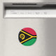 Le drapeau de Vanuatu (Bislama : flaeg blong Vanuatu) a été adopté le 18 février 1980. Le vert représente la richesse des îles, le rouge symbolise le sang qui unit l'humanité en tant qu'humains, et le noir le peuple ni-Vanuatu. Le Premier Ministre du Vanuatu, le père Walter Lini, a demandé l'inclusion de fimbriations jaunes et noires pour faire ressortir les noirs. La forme jaune Y représente la forme des îles de Vanuatu sur la carte et la lumière de l'évangile traversant le motif des îles de l'océan Pacifique (environ 83% des habitants de Vanuatu professent le christianisme). L'emblème dans le noir est la défensive d'un sanglier — le symbole des coutumes et de la tradition mais aussi de la prospérité. Il est porté comme un pendentif sur les îles - avec deux feuilles du nommier local. Ces feuilles sont censés être un gage de paix, et leurs 39 tracts représentent les 39 premiers membres du Parlement de Vanuatu.