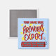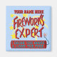 Ce drôle de design d'aimant carré du Quart Juillet est pour les hommes qui aiment la bière et faire exploser les feux d'artifice. Il est écrit "Fireworks Expert : Je bois la chaudière et j'allume le fusil." Il a une image arrière - plan d'étoiles et de stries de feux d'artifice et une partie du texte est sur une image de feu d'artifice avec un fusible éclairé. L'arrière - plan est bleu clair. Utilisez le modèle pour ajouter facilement votre nom ou toute autre courte ligne de texte en haut. Si vous préférez laisser cet espace vide, supprimez simplement l'exemple de texte. Célébrez le bon vieux USA / Etats-Unis d'Amérique le Jour de l'Indépendance avec ce magnet frigo personnalisé et humoristique cool. Parce que rien n'est plus américain que de mélanger de l'alcool avec des explosifs bruyants. Voir ce design sur le lien du magasin HaHaHolidays pour les magnets ronds et plus de produits.