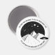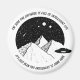 Aimant amusant avec paysage de montagne illustré et vaisseau spatial quittant la Terre. Citation : "Je suis sûr que l'univers est plein de vie intelligente. C'est juste trop intelligent pour venir ici." — Arthur C. Clarke